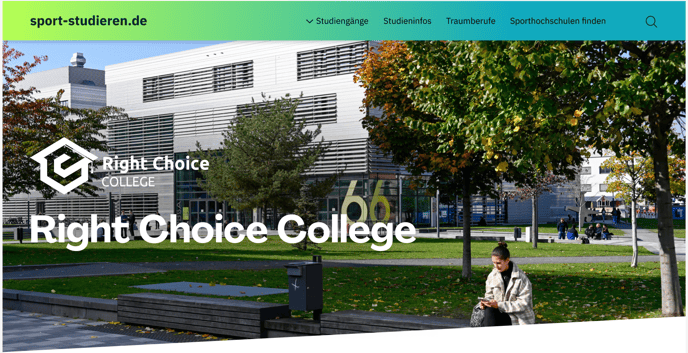 Premium-Profile bei Teilnahme an der CPL-Auktion: Darstellung mit Hero-Image und Logo für die Top-15-Anbieter mit Logo und prominenter Bild-Darstellung sowie ausklappbarer Studiengangs-Darstellung
